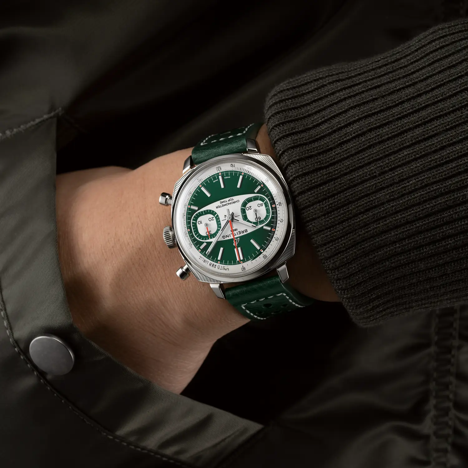 Introduced in the transformative 1960s, Willy Breitling’s unconventional line of racing-inspired chronographs captured the era’s freewheeling vibe. Today, the new Top Time collection channels that adrenaline-fueled energy, blending modern-retro design with cutting-edge performance The Top Time Racing is a descendant of some of the most striking Top Time designs of the 1960s. The cushion-shaped case, bold tachymeter scale, and distinctive “squircle” subdials evoke the high speeds and split-second decisions of the race route. At the heart of the dial is the signature “surfboard” motif—an elliptical design straight out of the Top Time archives, inspired by classic-car dashboards.