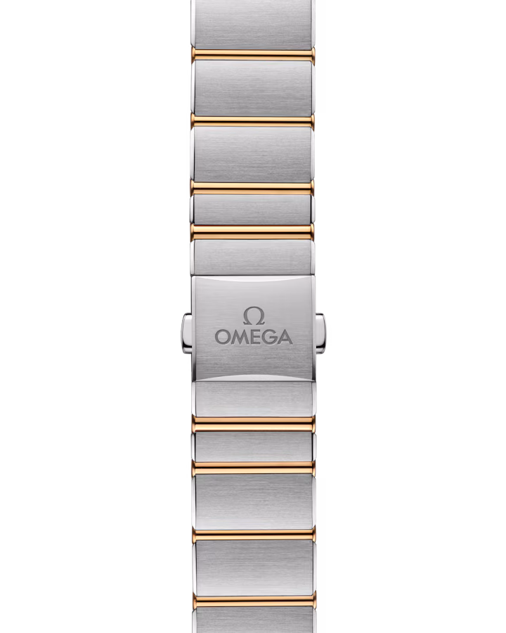 Calibre OMEGA 4061: Quartz movement with "Long Life" feature to maximize the autonomy of the battery. Exclusive red OMEGA logo with rhodium plated parts and circular graining.